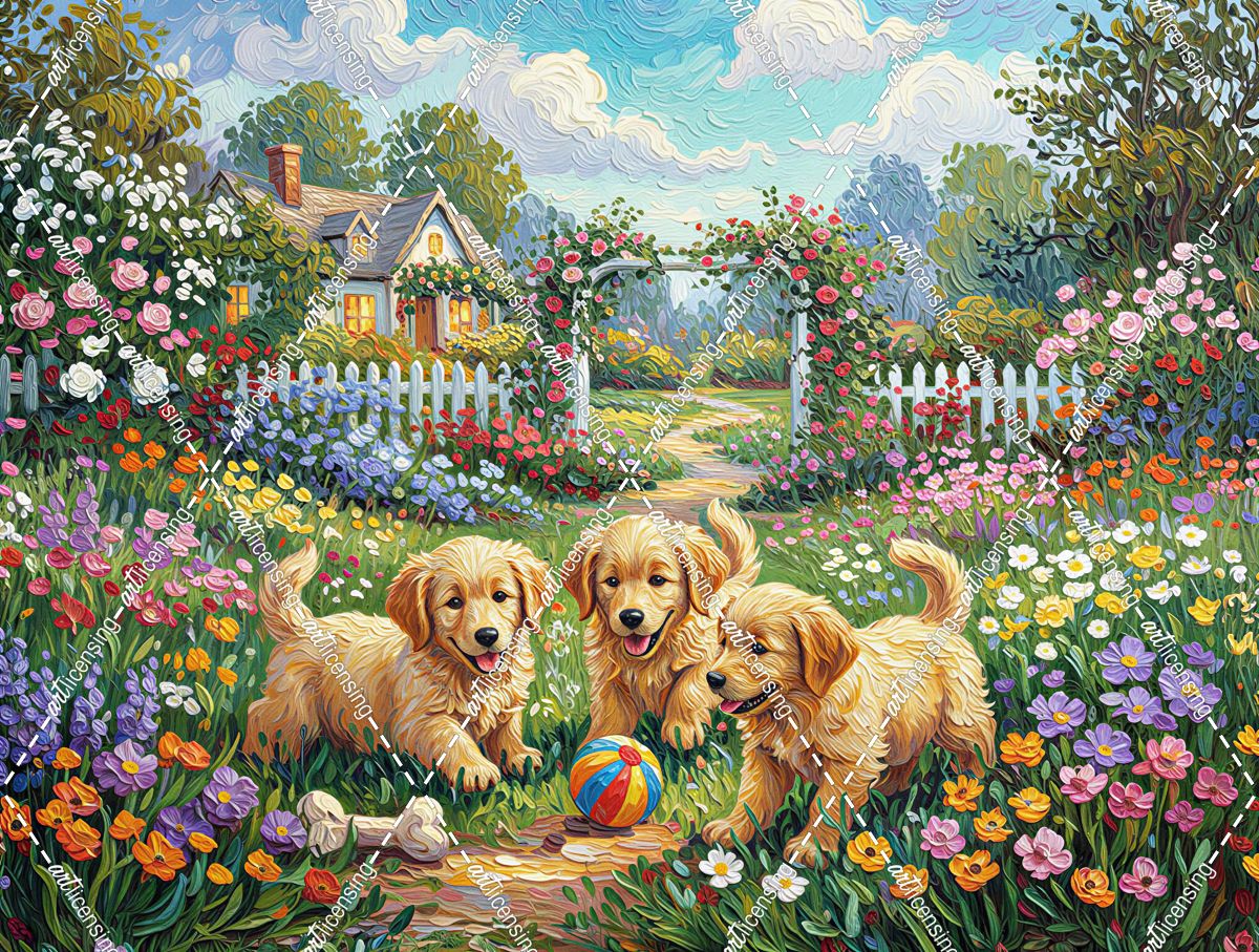 Puppies In Wildflower Garden 1