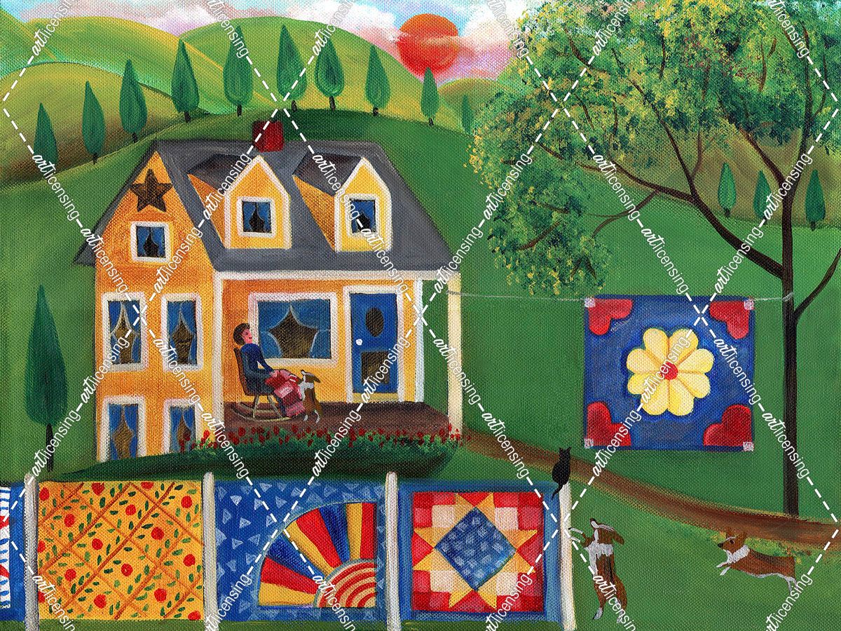 Quilt Lady and Corgi Dogs
