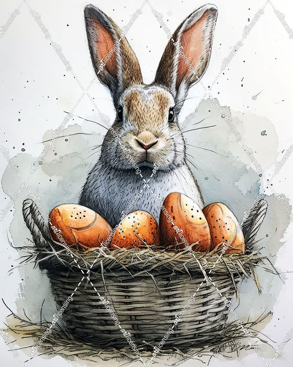 Rabbit With Basket Of Eggs