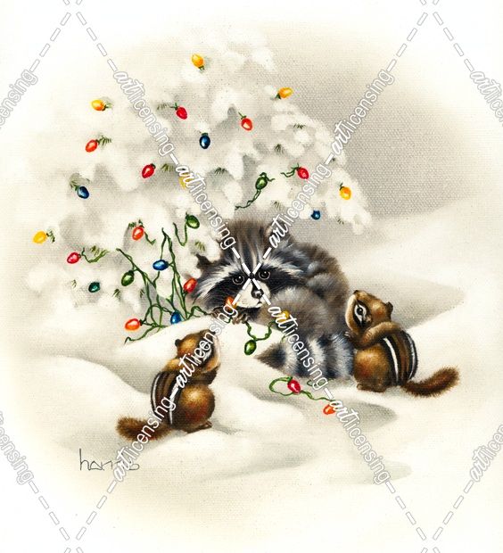 Raccoon/ Chipmunks/ Christmas Lights