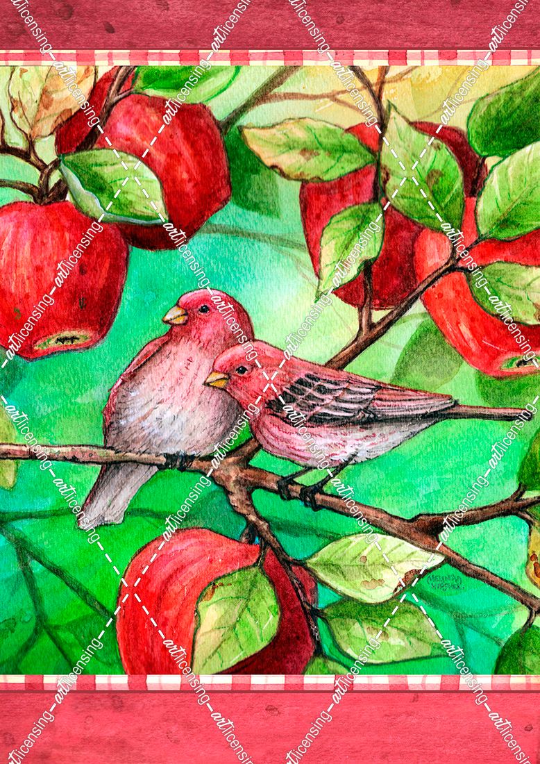 Red Finches With Apples