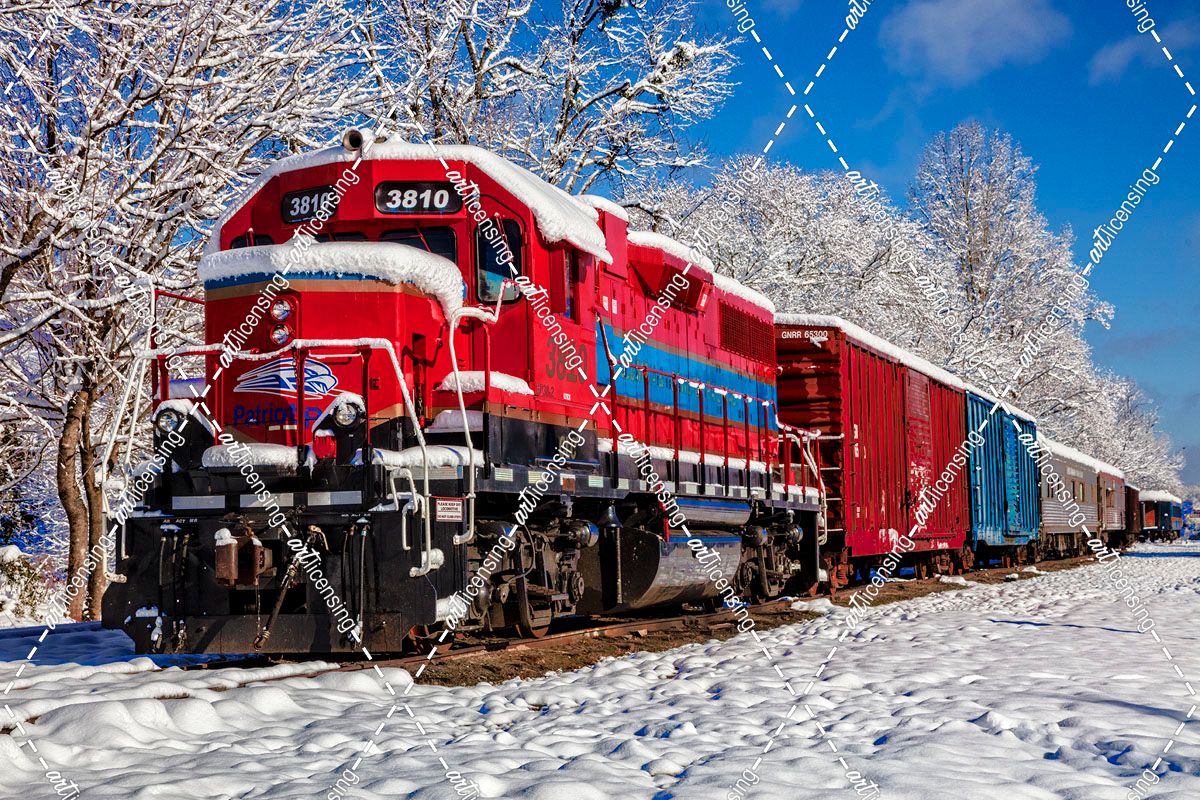Red Train In The Snow