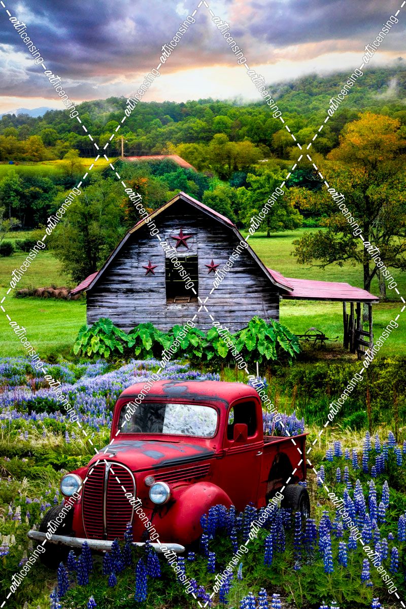 Red Truck in Early Autumn Fields