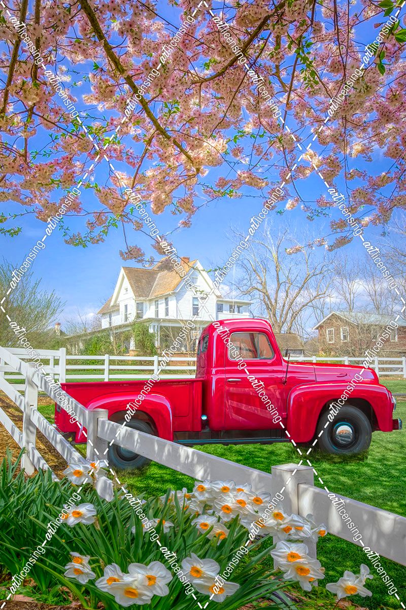 Red Truck in Spring