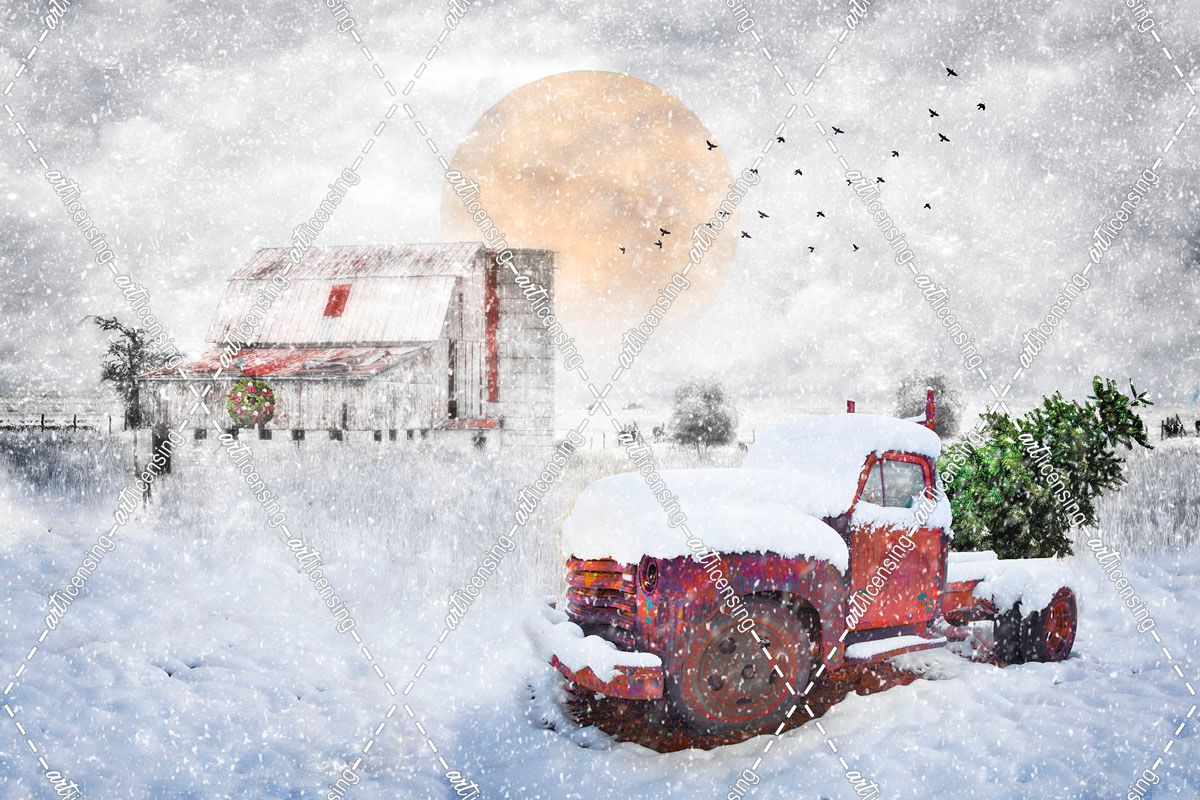 Red Truck in the Snow 2