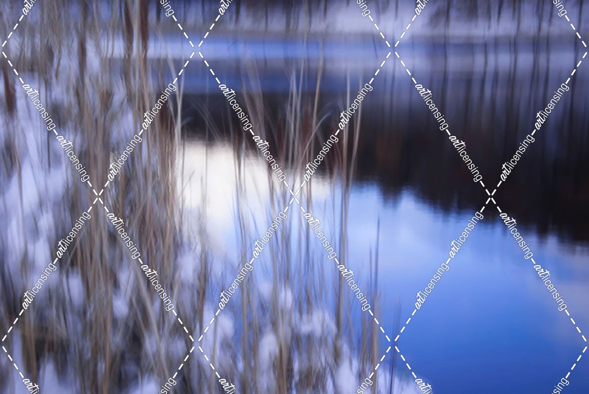 Reeds In Snow Along Pond-5281