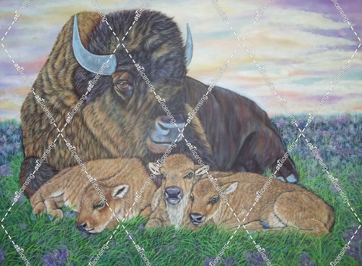 Resting Bison And Three Calves
