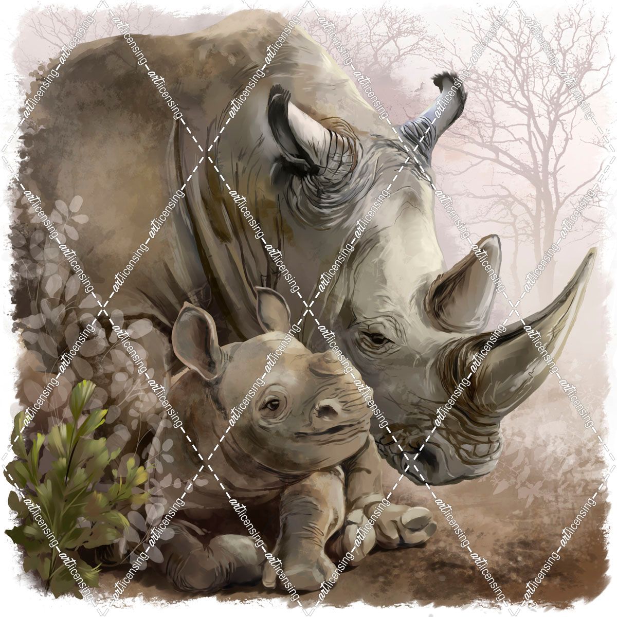 Rhinoceros And His Little Cub