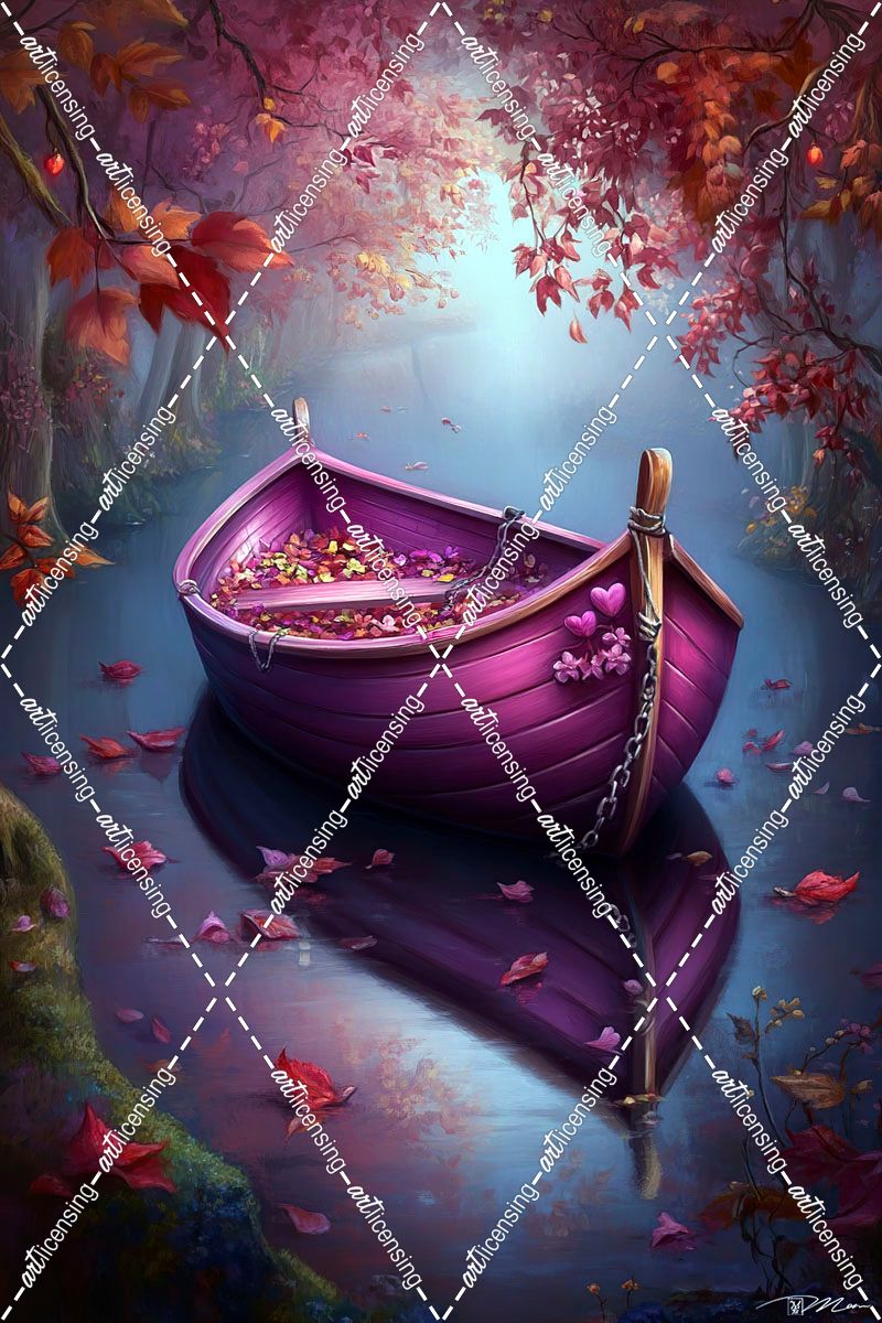 Romantic Purple Boat On The River