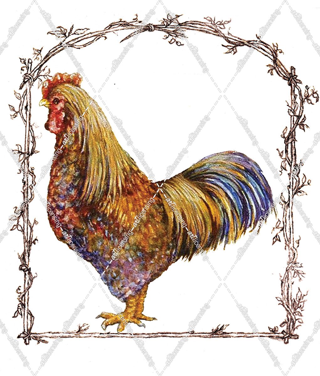Rooster Colorful-Twig Border-Brn