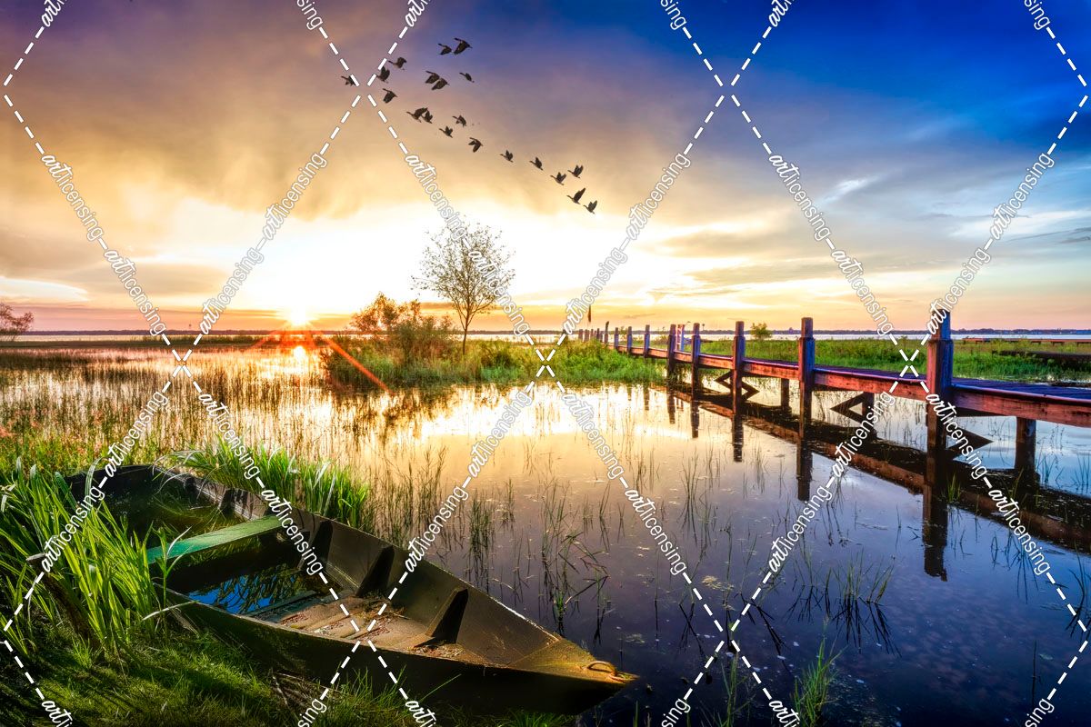 Rowboat in the Marsh at Sunset