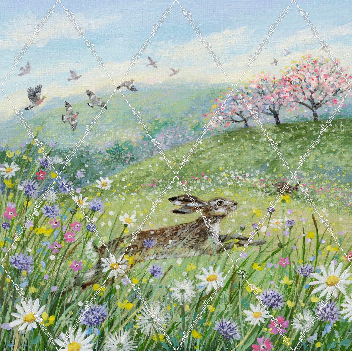 Running Hare and Ox-Eye Daisies