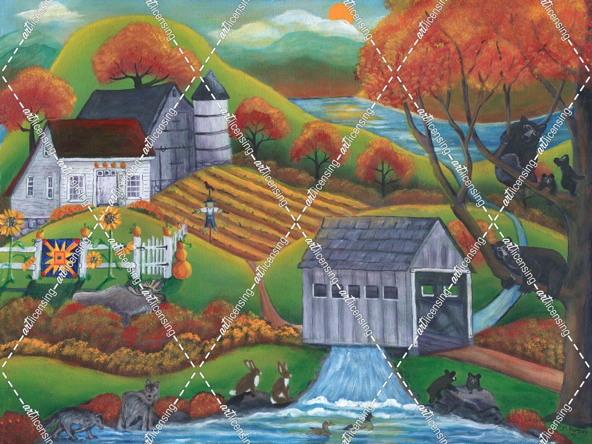 Rustic Farm Wildlife by Covered Bridge