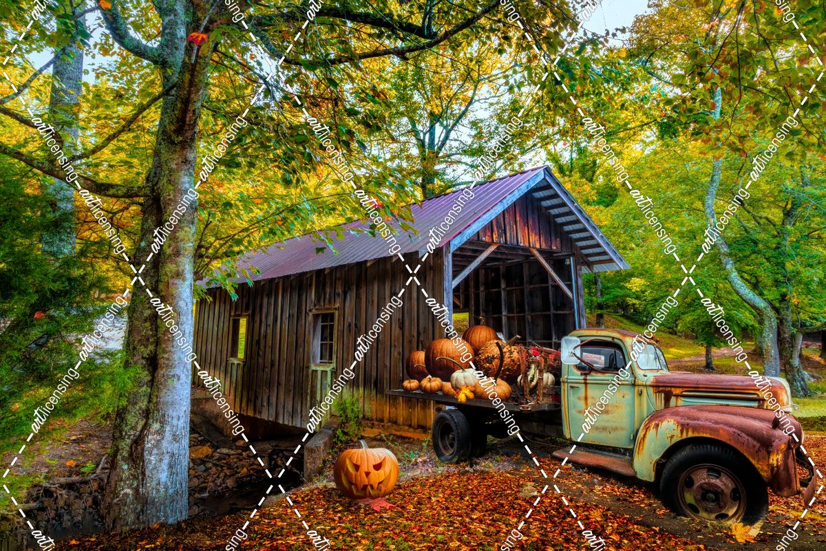 Rusty Truck at the Covered Bridge