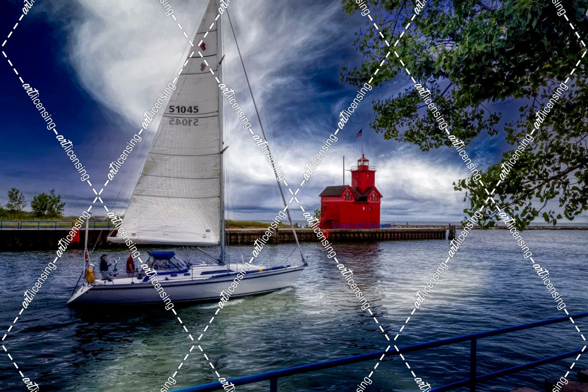 Sailboat at the Holland Harbor Lighthouse