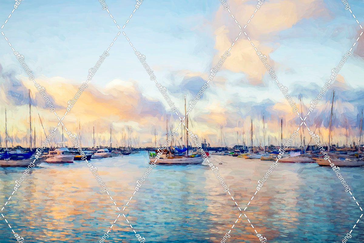 San Diego Harbor Nautical Painterly Style