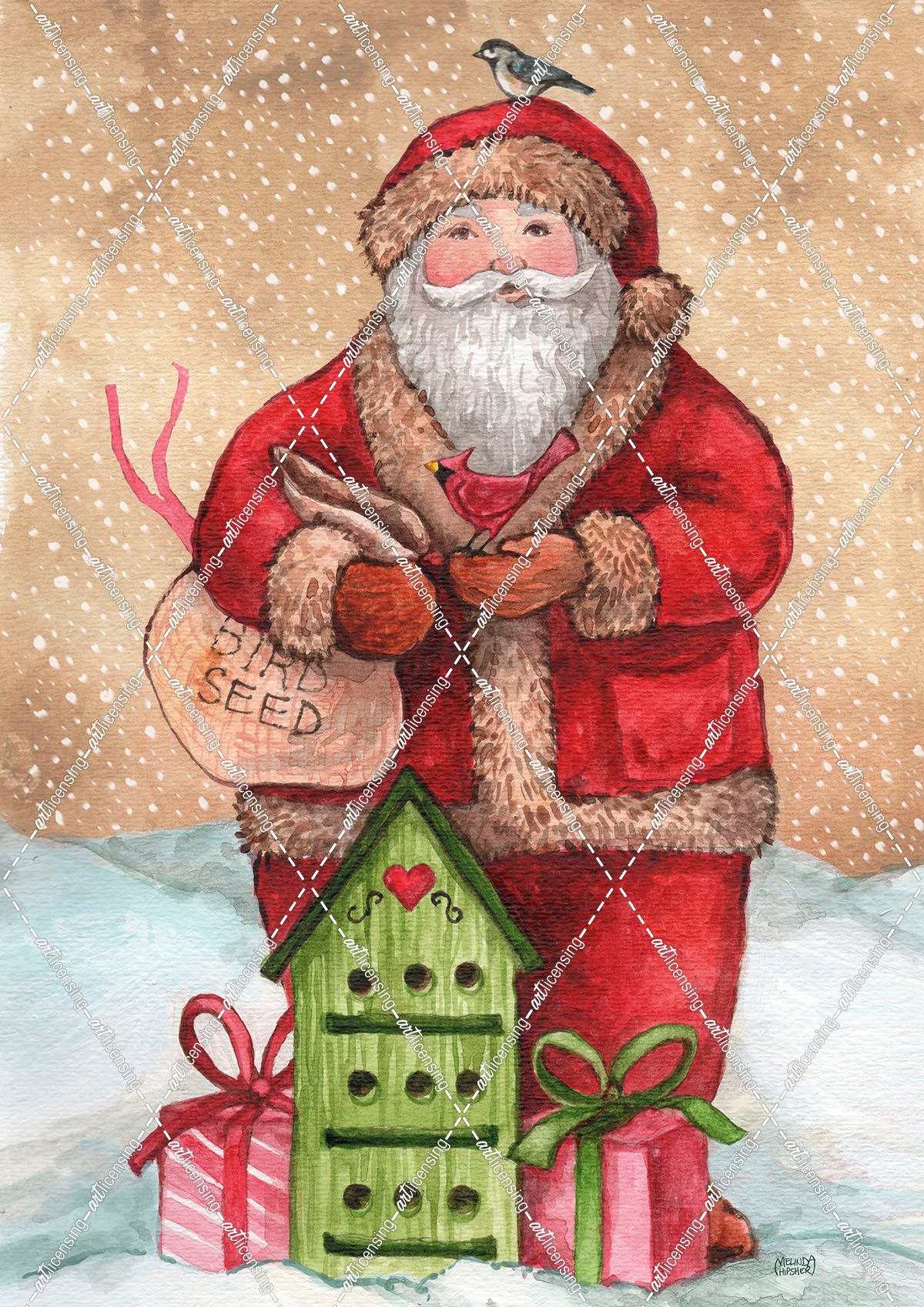 Santa with Birdhouse and Presents