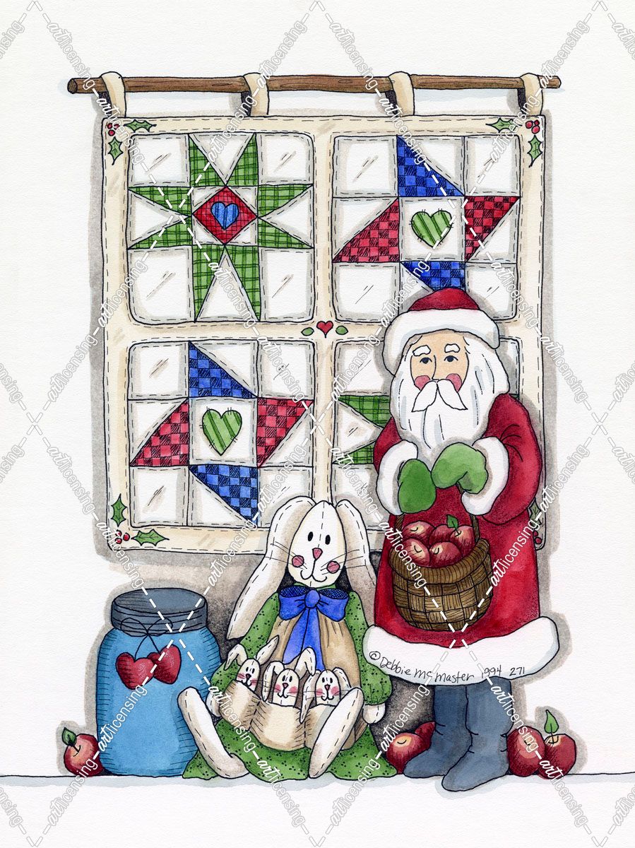 Santa With Quilt & Bunnies