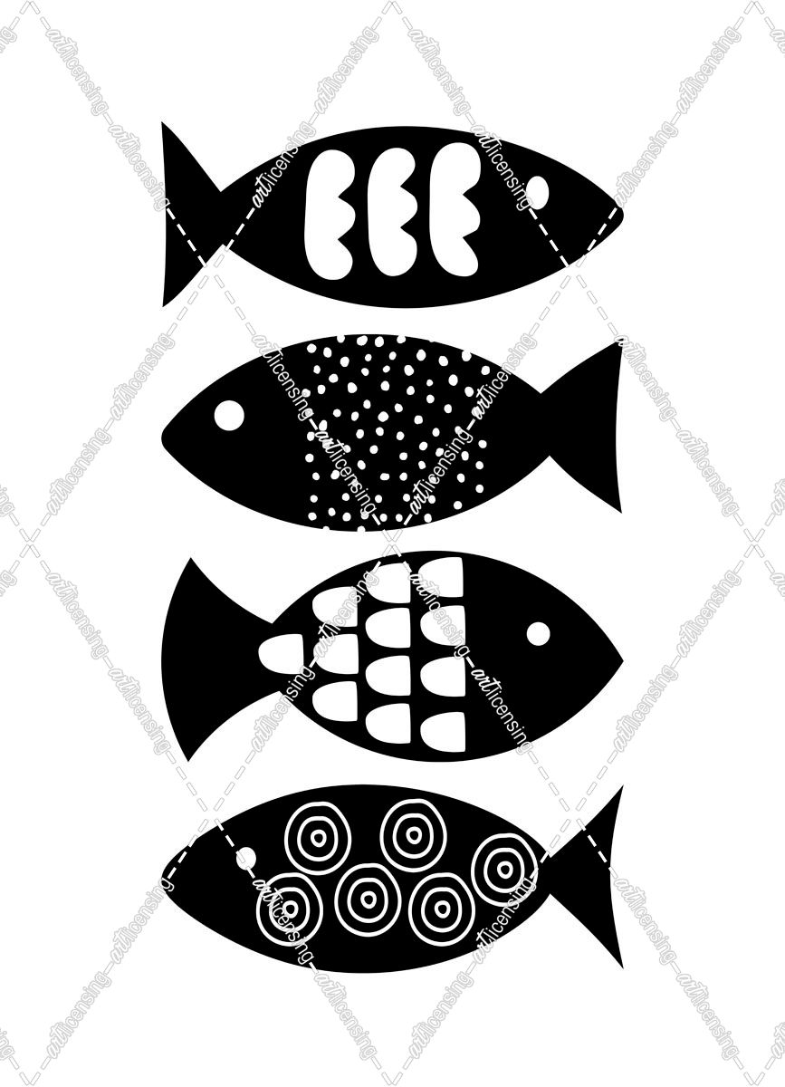 Scandinavian Black and White Abstract Fish