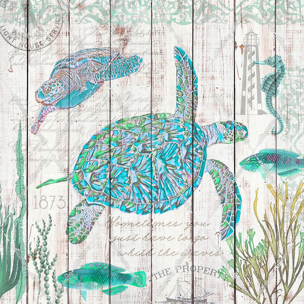 Sea Turtles on Driftwood Panel