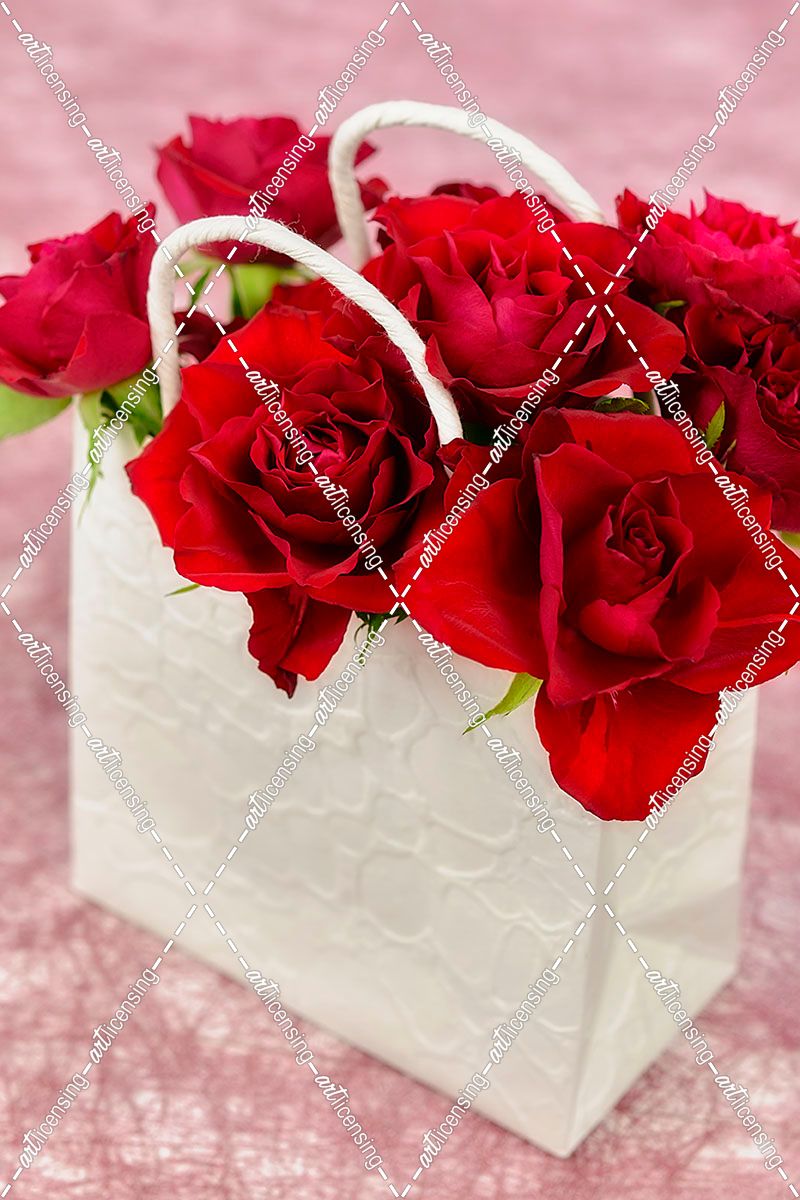 Shopping Bag with Red Roses