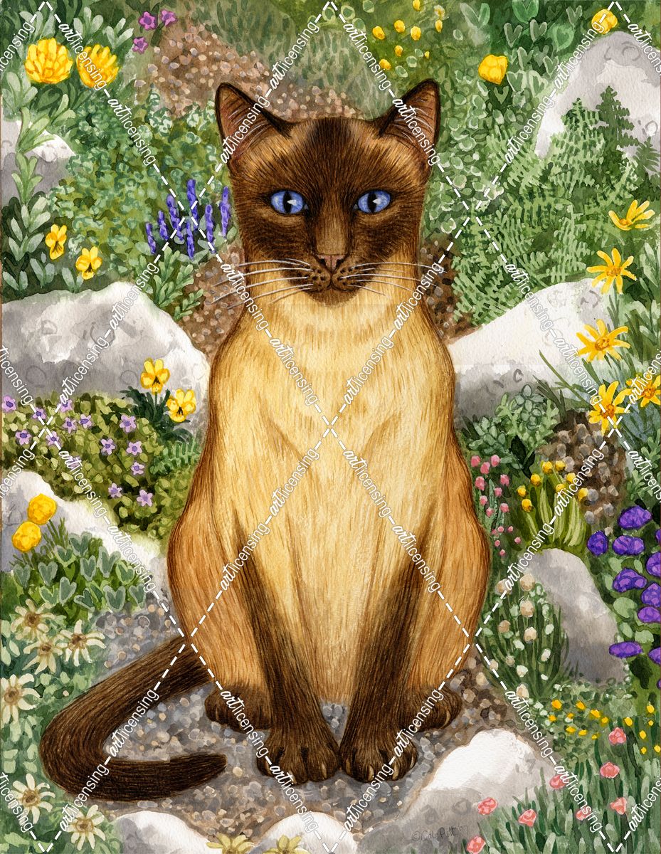 Siamese Cat In Rock Garden (Front)