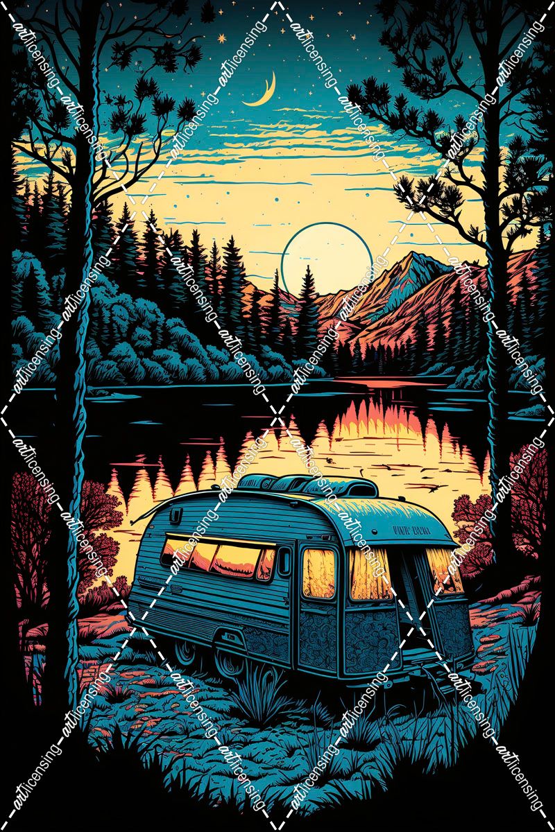 Silkscreen Camper On The Lake 16