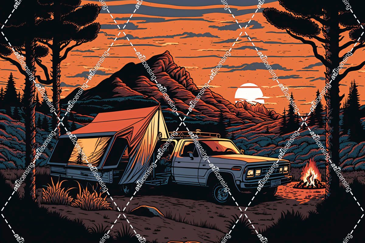 Silkscreen Pickup Truck At The Campsite 2
