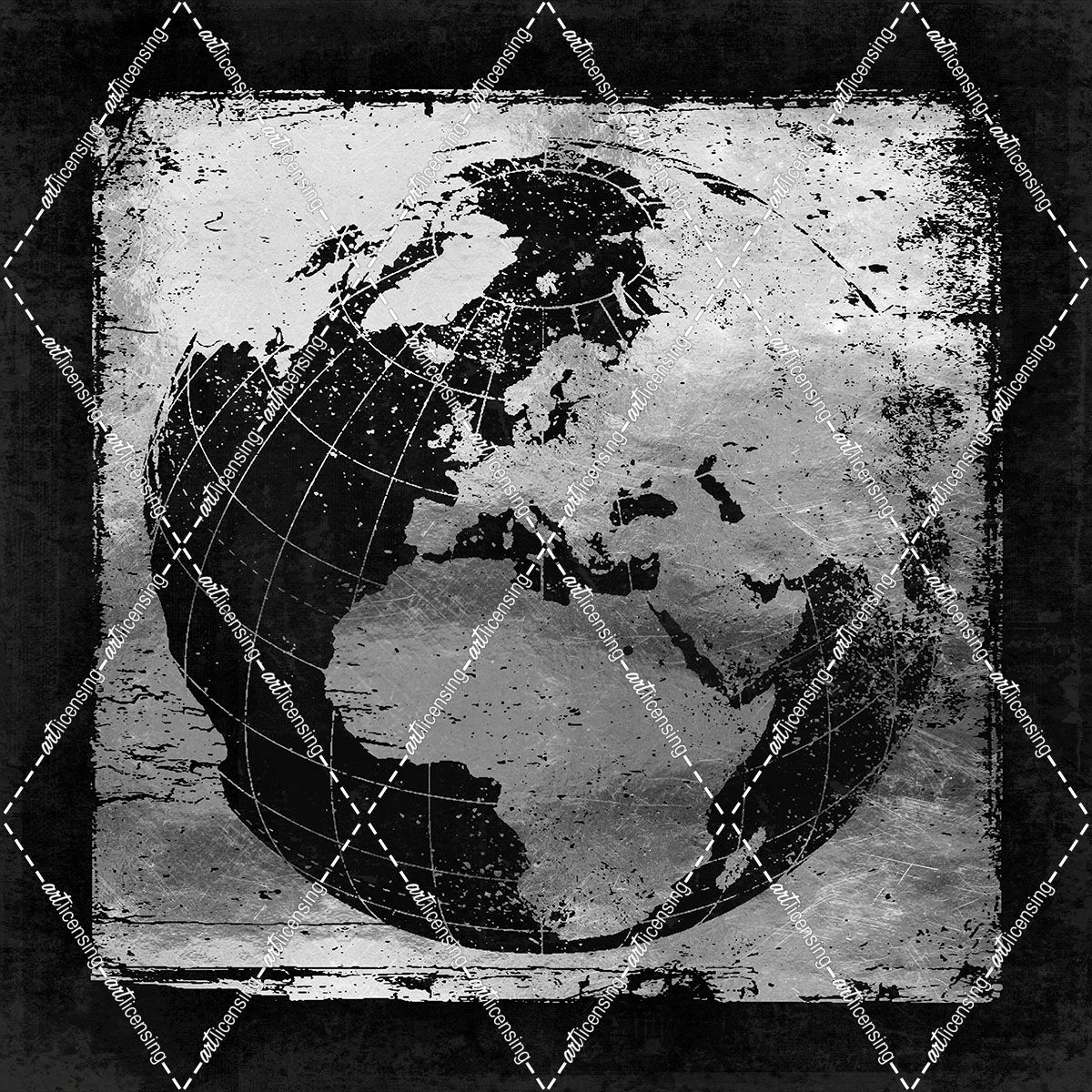 Silver Vintage Earth With Grid Lines