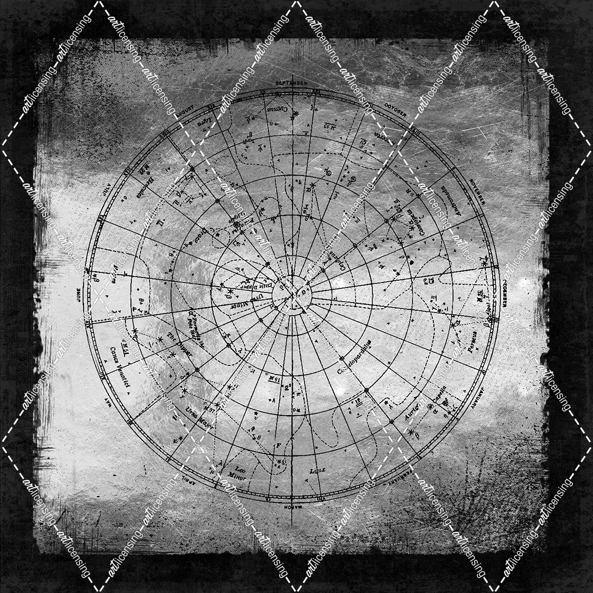 Silver Vintage Northern night sky constellation map