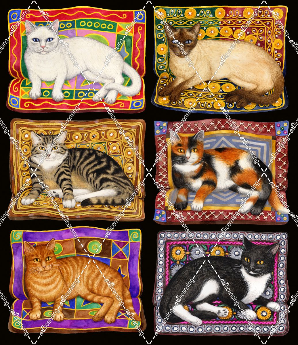 Six Cats On Cushions