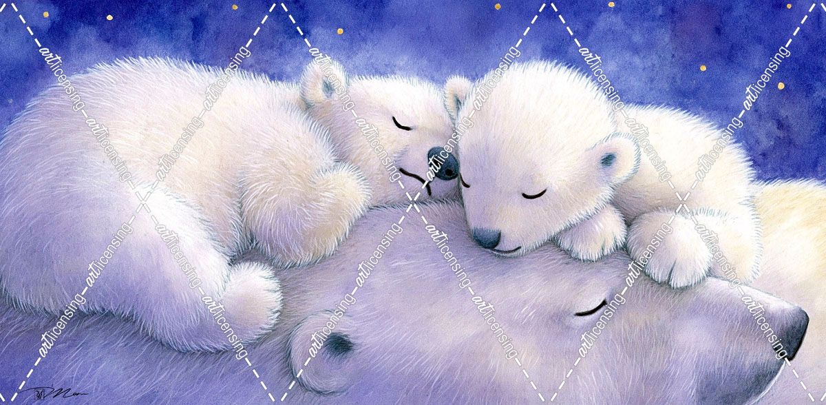 Sleeping Polar Bear Family Winter Illustration