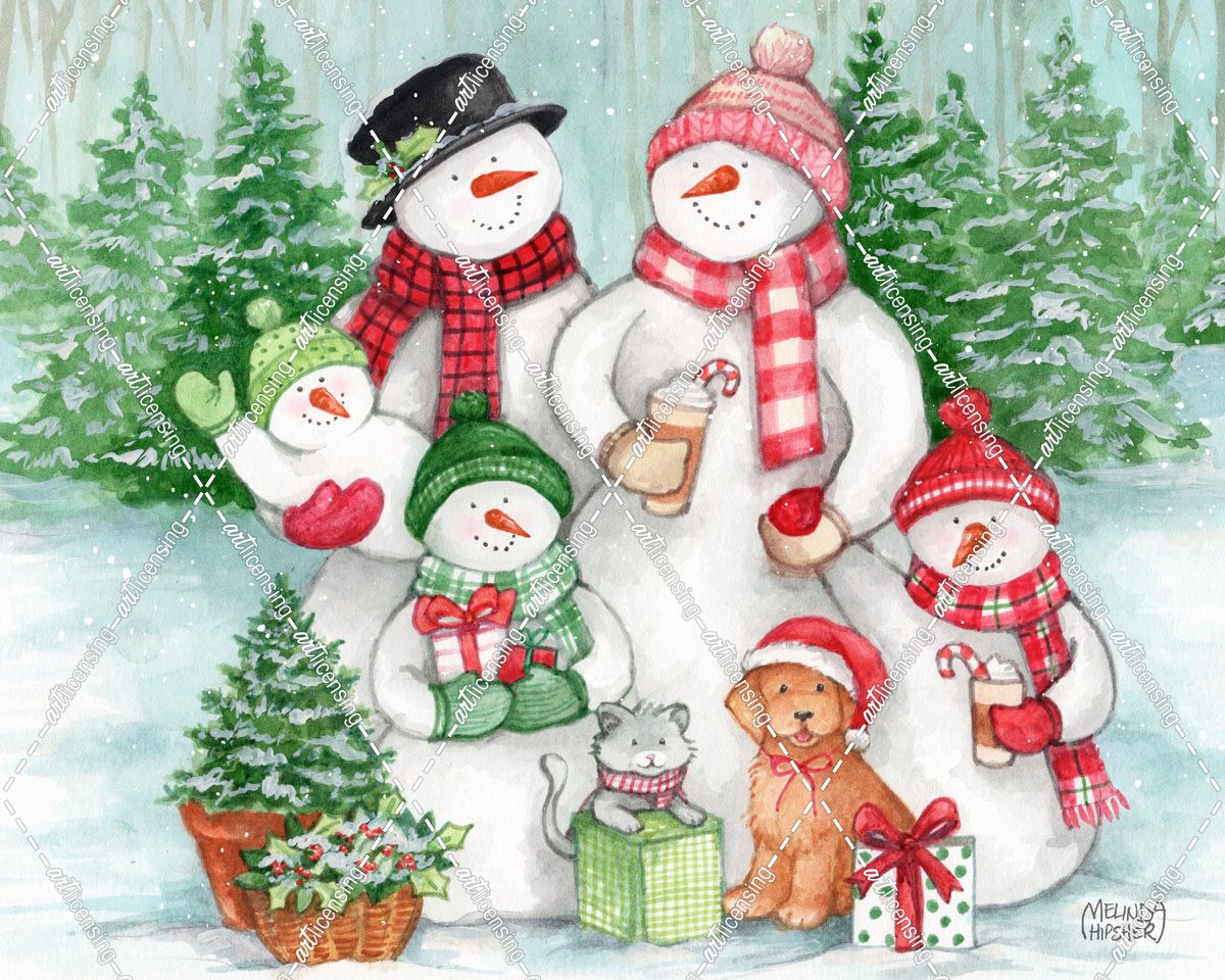 Snow Family In Winter Woods