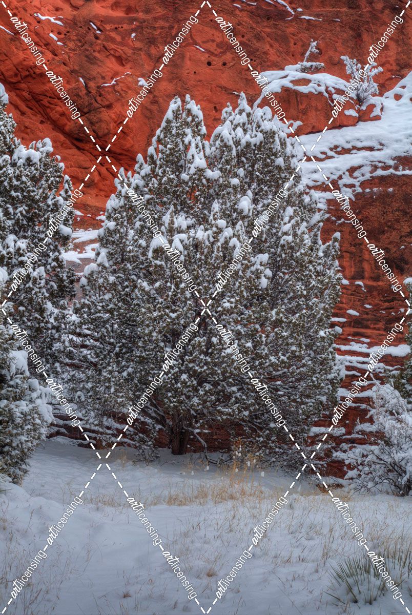 Snow Trees Against  A Canyon Wall