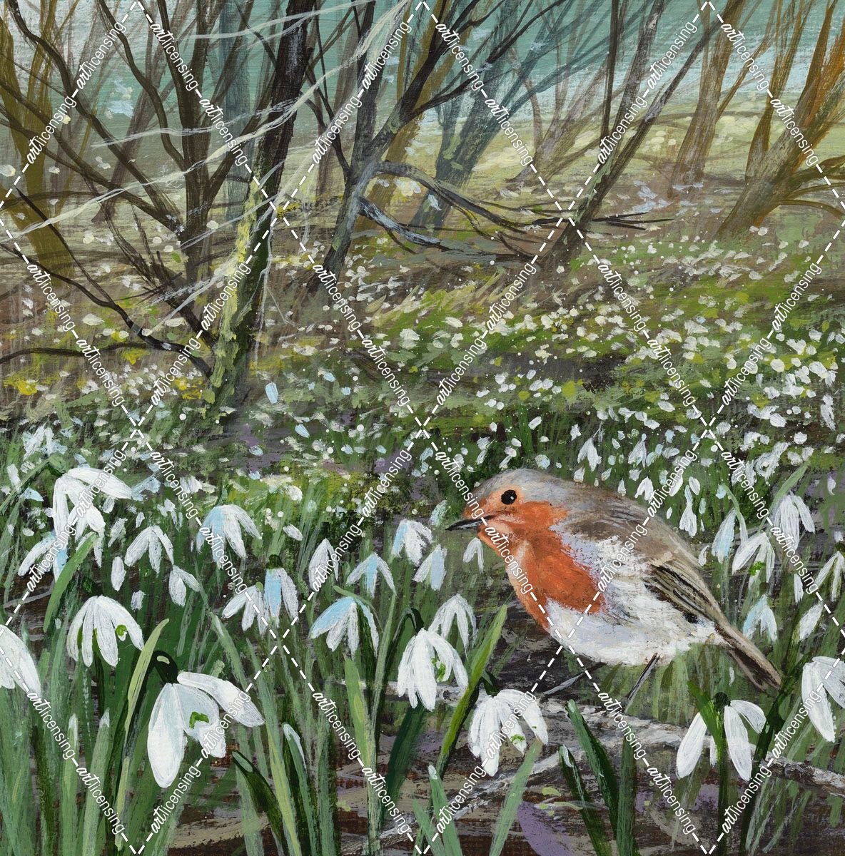 Snowdrops and Robin
