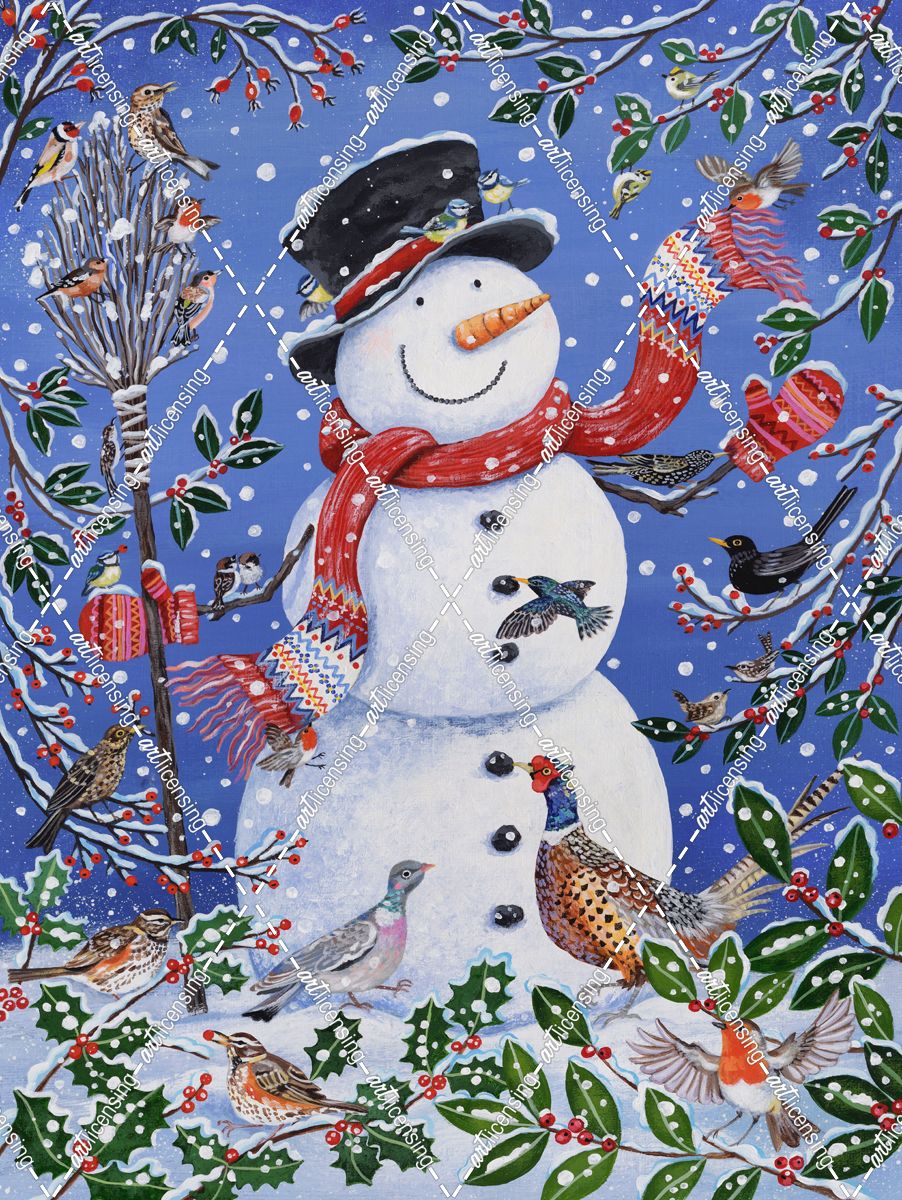 Snowman And Winter Birds