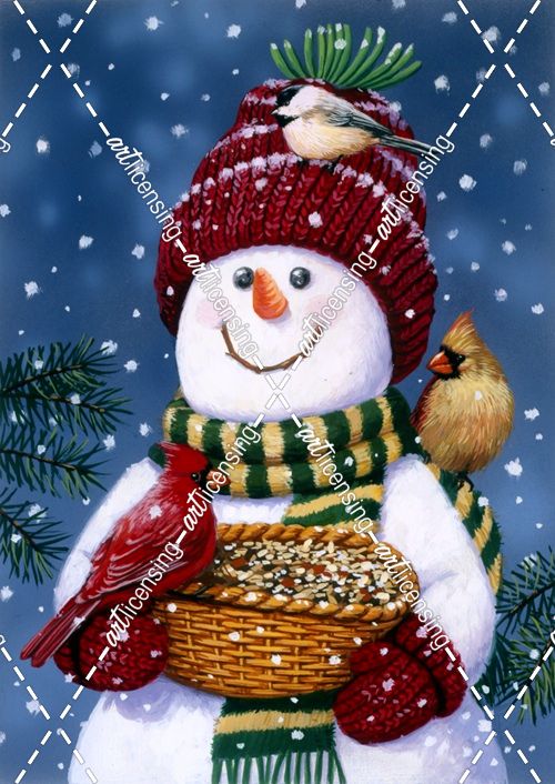 Snowman Feeding Birds