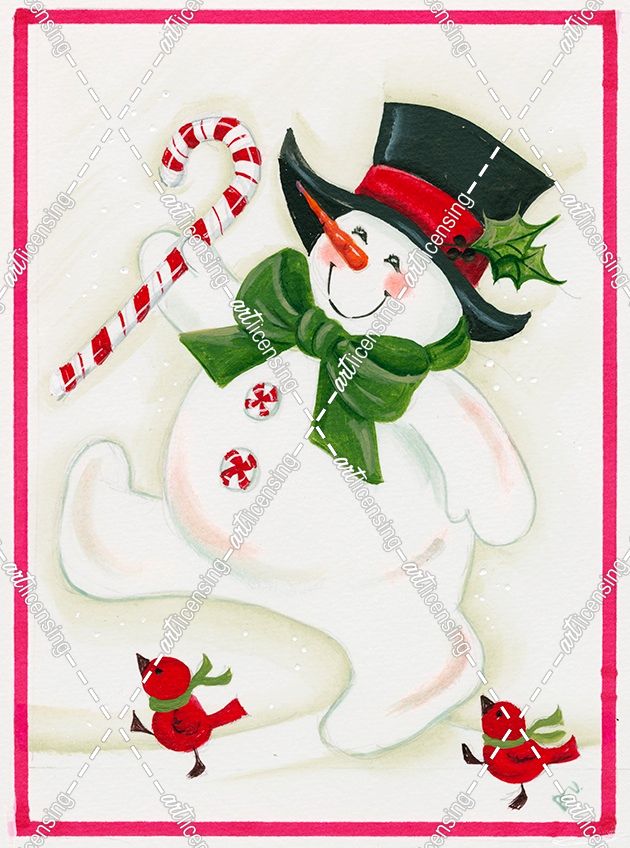 Snowman Marching With 2 Birds