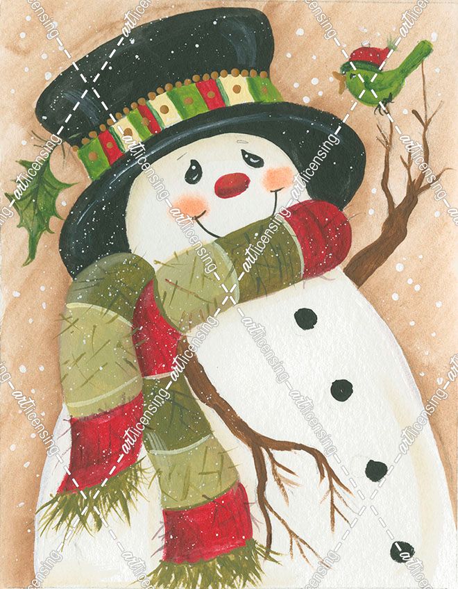 Snowman With Green Bird