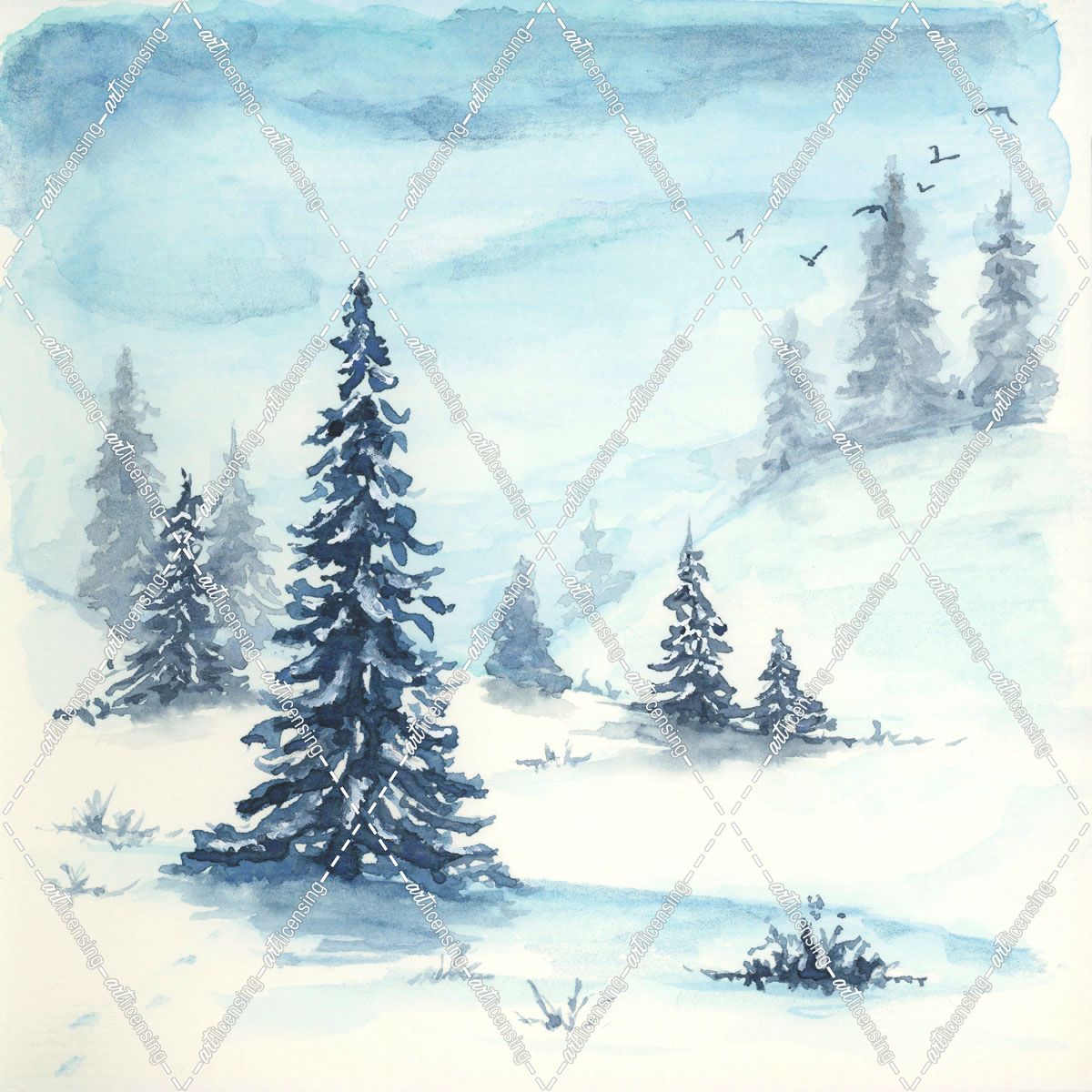 Snowy Blue Pine Hillside