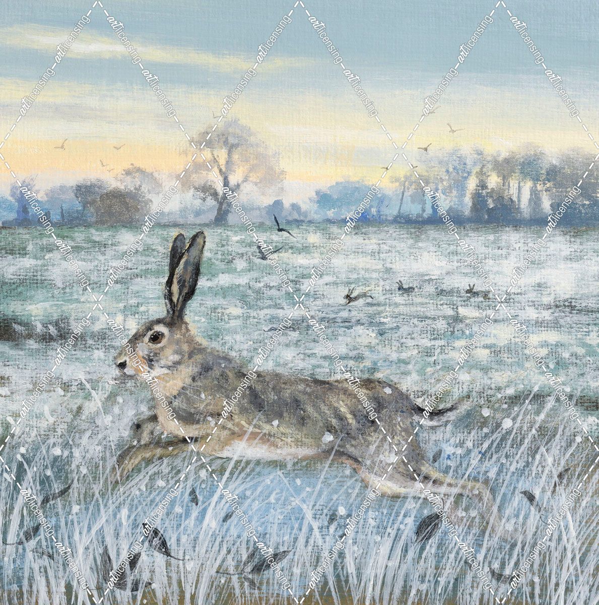 Snowy Field and Hare