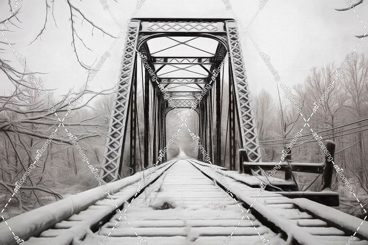 Snowy Railroad Trestle Painting