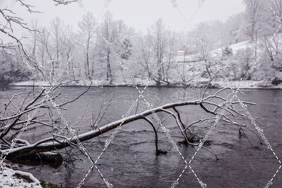 Snowy Tree Reaching into the River