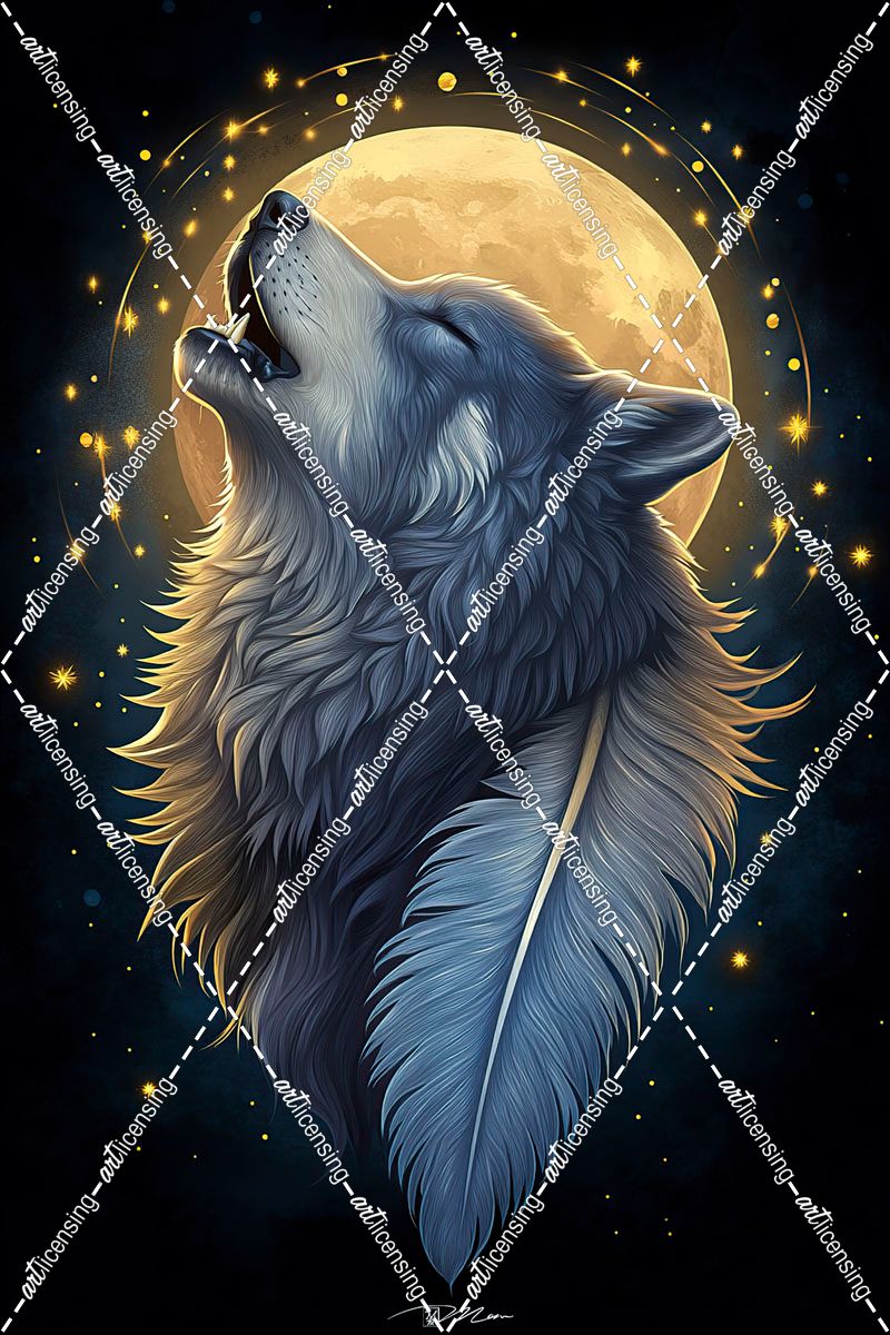 Spirit Of The Blue Wolf With The Moon