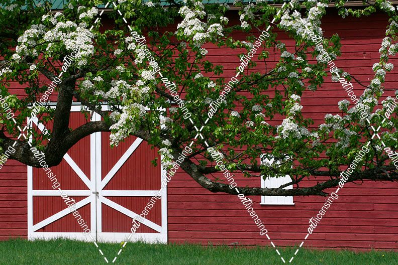 Spring Blossoms Red Barn