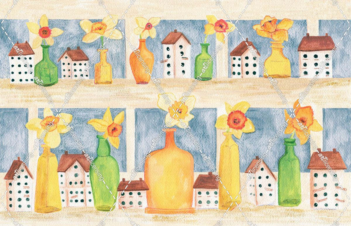 Spring Daffodils and Bird Houses