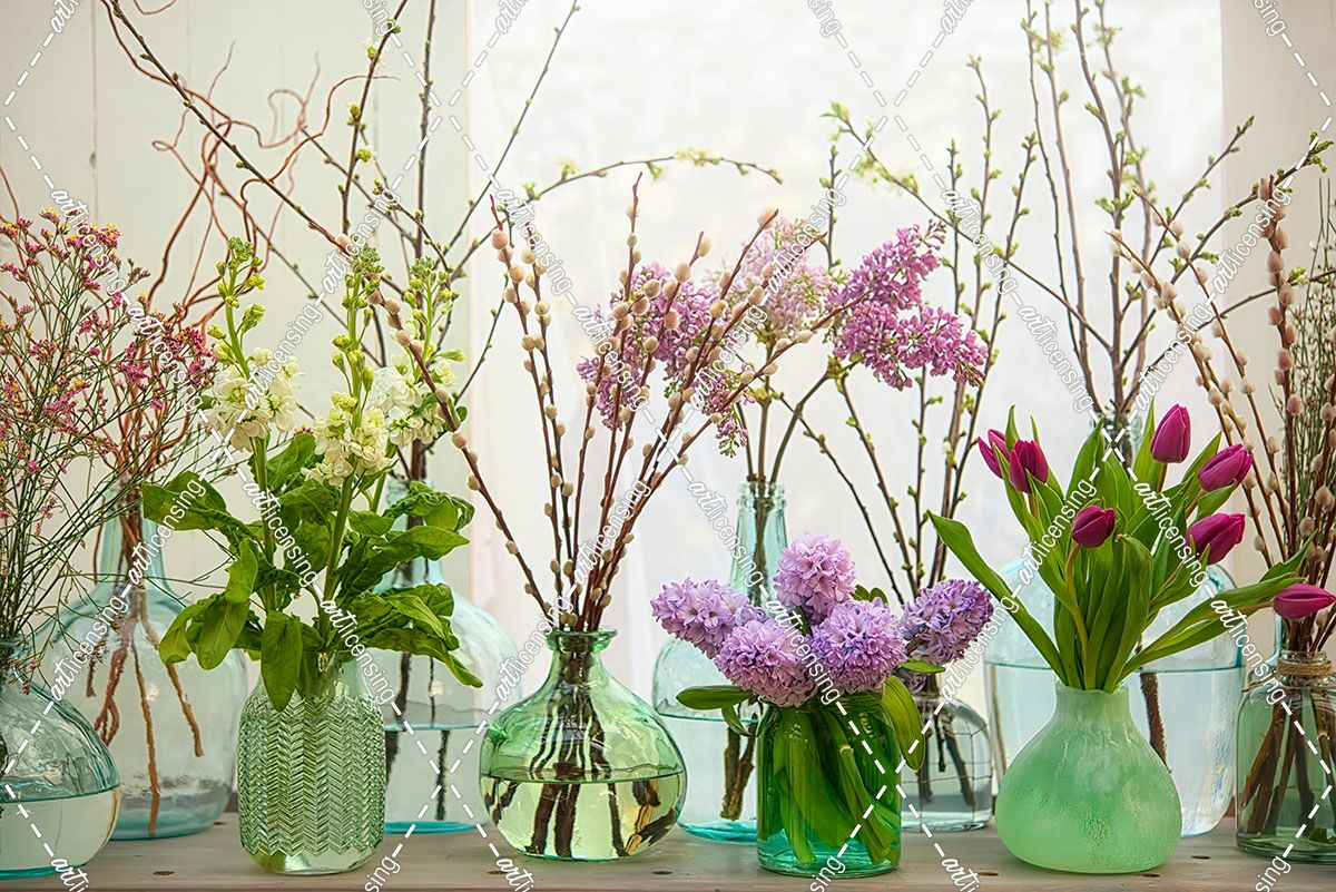 Spring Flowers in Glass Bottles III