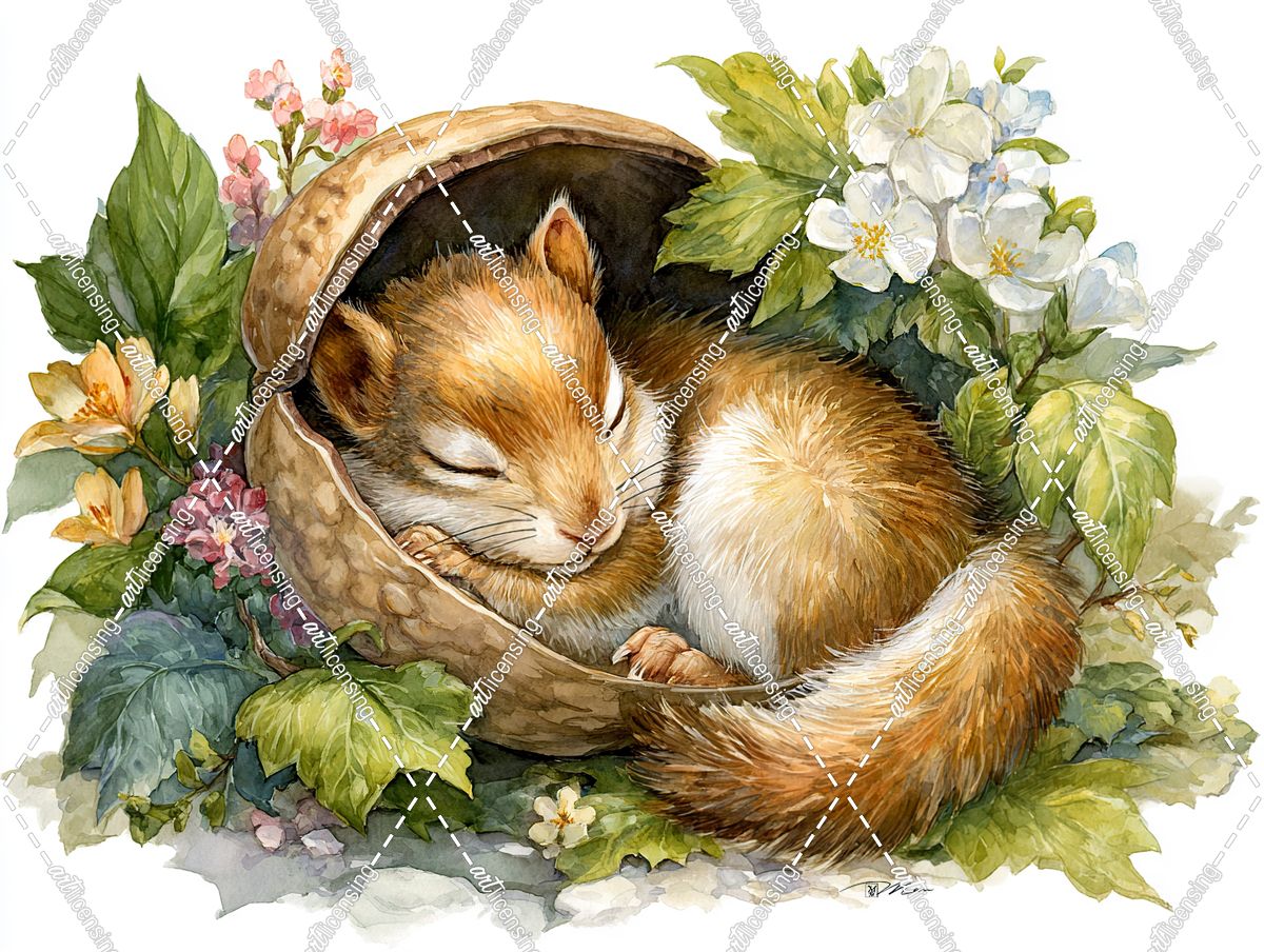 Squirrel Sleeping In A Walnut Shell