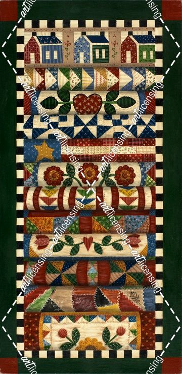 Stack Of Quilts With Dark Green Border 2