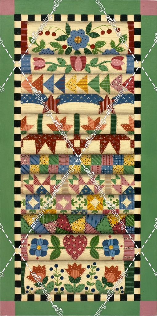 Stack Of Quilts With Light Green Border 2